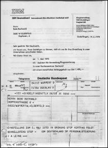 Der Arbeitsvertrag kam nach dem Einstellungstest per Telegramm. (Damals hatte man noch kein Fax und E-mail erst recht nicht) Ausbildung im Rechenzentrum Dortmund zum Spezialisten für Anwendung und Programmierung Und bitte nicht lachen wegen meines Einstiegsgehaltes in Höhe von DM 1.450. Das wären heute umgerechnet ca. 2.100 €. |